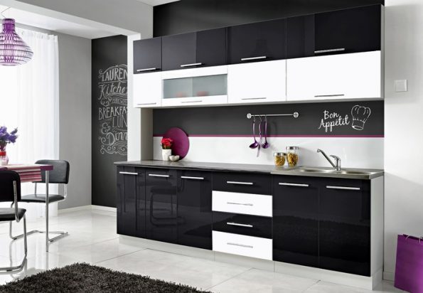 מטבח MONIKA גודל 2.6 מטר עליון ותחתון בצבעי שחור ולבן