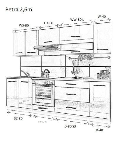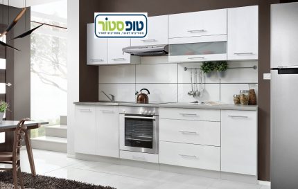 מטבח PETRA גודל 2.6 מטר עליון ותחתון בצבעי לבן