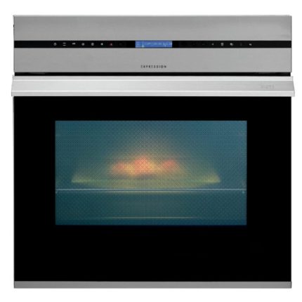 • תנור בנוי מעוצב מסדרת PURE LINE, התנור בנוי בעיצוב זכוכית שחורה משולבת פסי נירוסטה