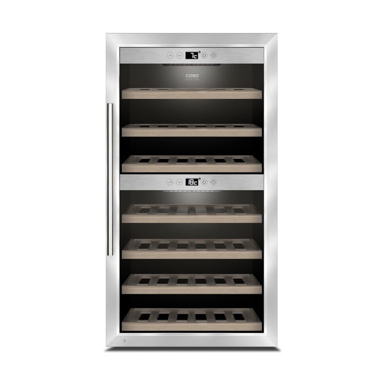 CASO WineComfort 66 שחור מקרר יין מעוצב, לעד 66 בקבוקים, 2 אזורי טמפרטורה