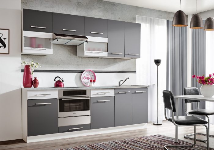 מטבח HIT גודל 2.4 מטר עליון ותחתון בצבעים אפור מט ולבן מבריק