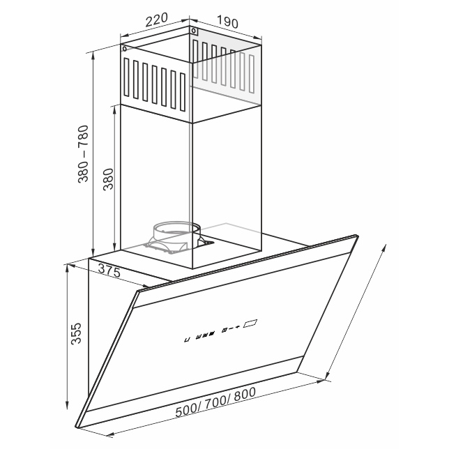 סוג המכשיר: קולט אדים צמוד קיר עם יניקה היקפית (Perimeter suction)