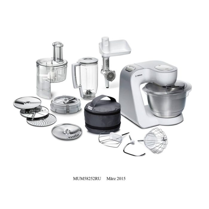 MUM58252RU בגימור לבן / טיטניום MUM5 – מיקסר משולב רב עוצמה עטור הפרסים בעיצוב, מבצע מגוון רחב מאוד של פעולות, קל לשימוש ובאיכות יוצאת מן הכלל של Bosch