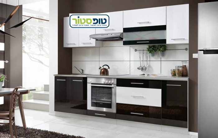 מטבח PETRA גודל 2.6 מטר תחתון בצבעי שחור ולבן